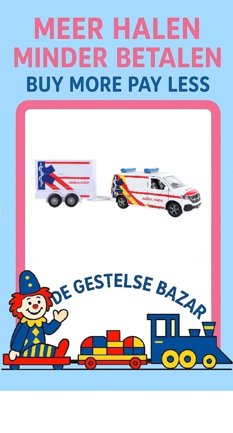 Art nr 190 Kids Globe VW Transporter Ambulance met Aanhangwagen 27½cm 3+
